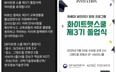 - J&K민간조사연구소에 도착한 뜻밖의 초청장 이야기 - 평소와 다름없는 어느 날, 제이앤케이 민간조사연구소에 ‘화이트햇스쿨 제3기 졸업..